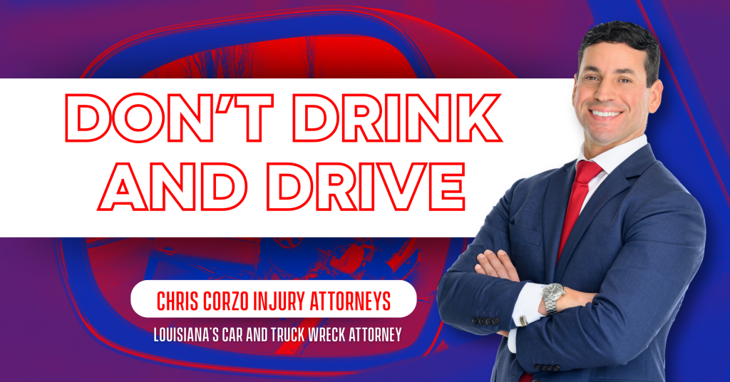 Always make safe choices — don’t drink and drive. If you’re ever involved in an accident, Chris Corzo Injury Attorneys is here to help 24/7. Call 999-1111 to speak with Louisiana’s trusted car and big truck lawyer.