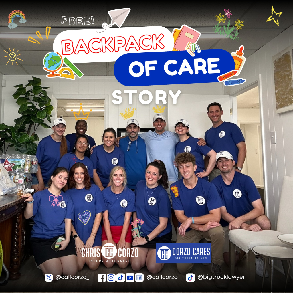 For more information about upcoming community events or the annual backpack giveaway, visit Corzo Cares or follow Chris Corzo Injury Attorneys on Facebook.